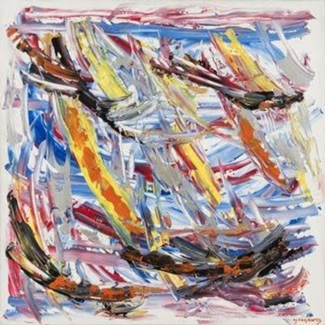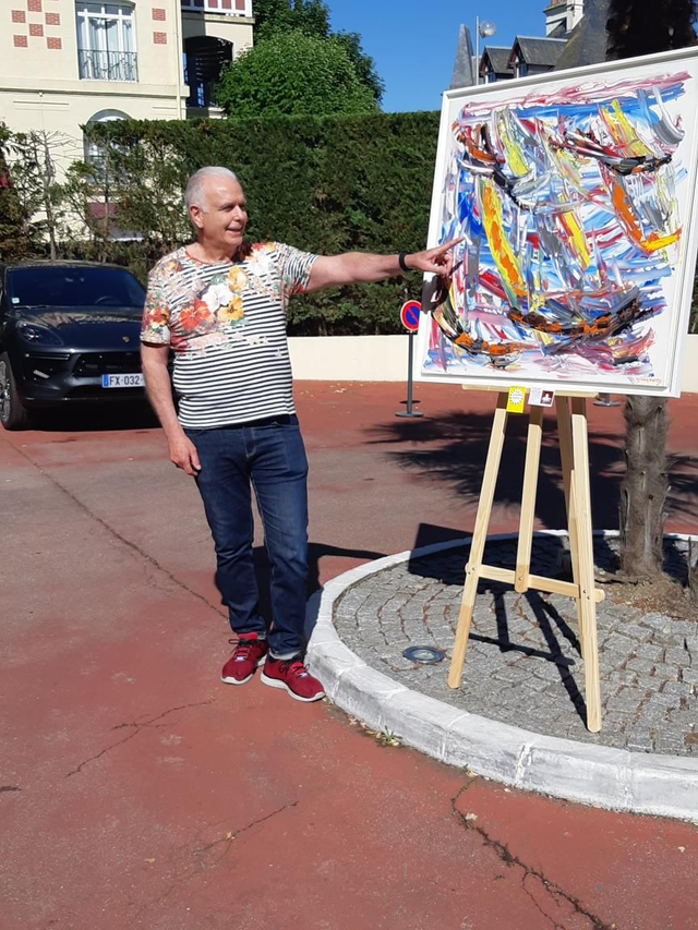L' Artiste passionné de course à la voile a réalisé sur la toile une régate.