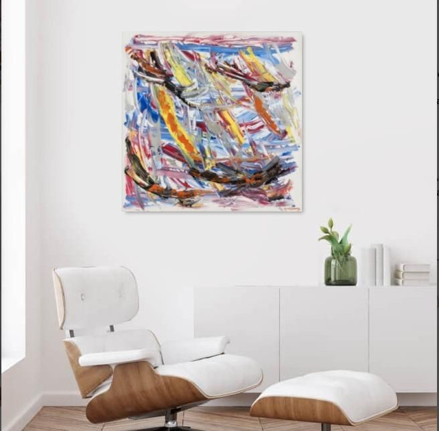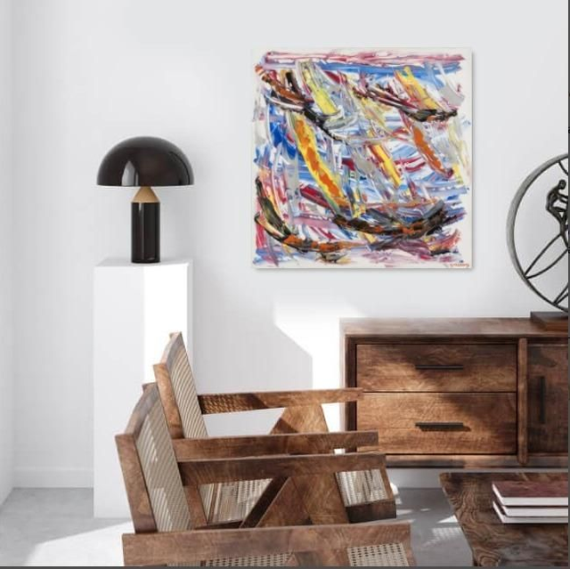 Vendu avec un certificat d'authenticité, un justificatif de cotation et une facture. Dimensions: 90x90cm . Encadré: Caisse USA blanche( contact : galeriegrecojc@gmail.com)