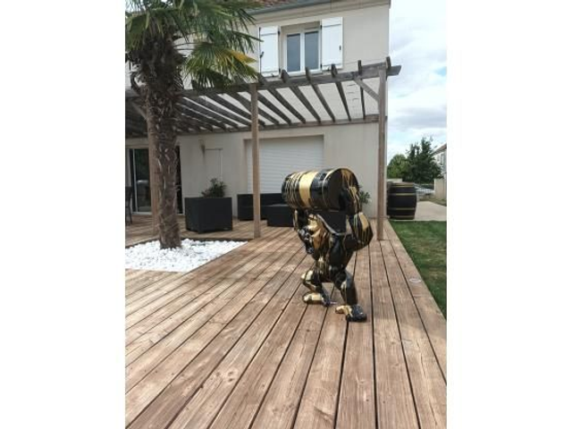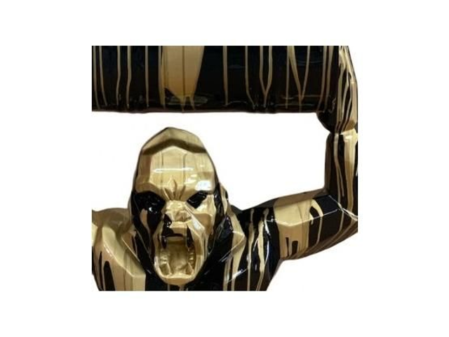 Sculpture en résine d'un Gorille avec son bidon noir trash /or - Résine fibrée