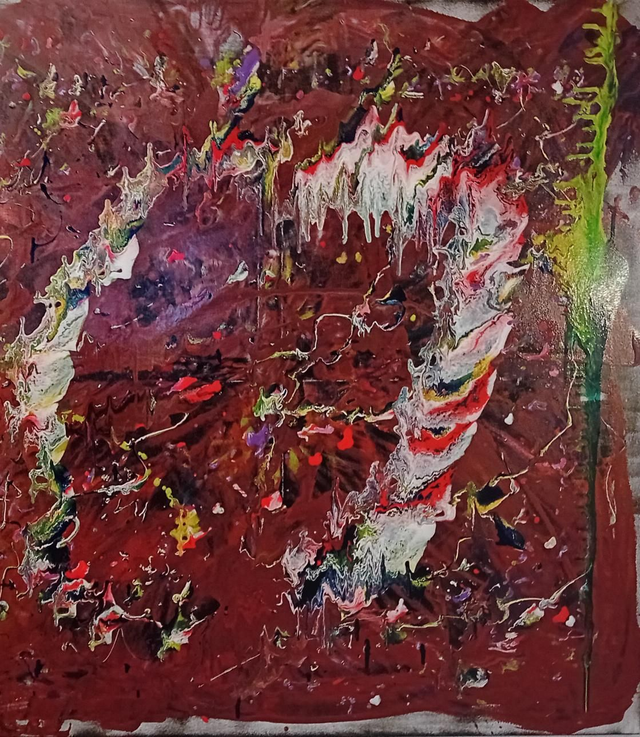 L' Artiste à réalisé sur la toile LE BIG BANG les prémices de l' univers...